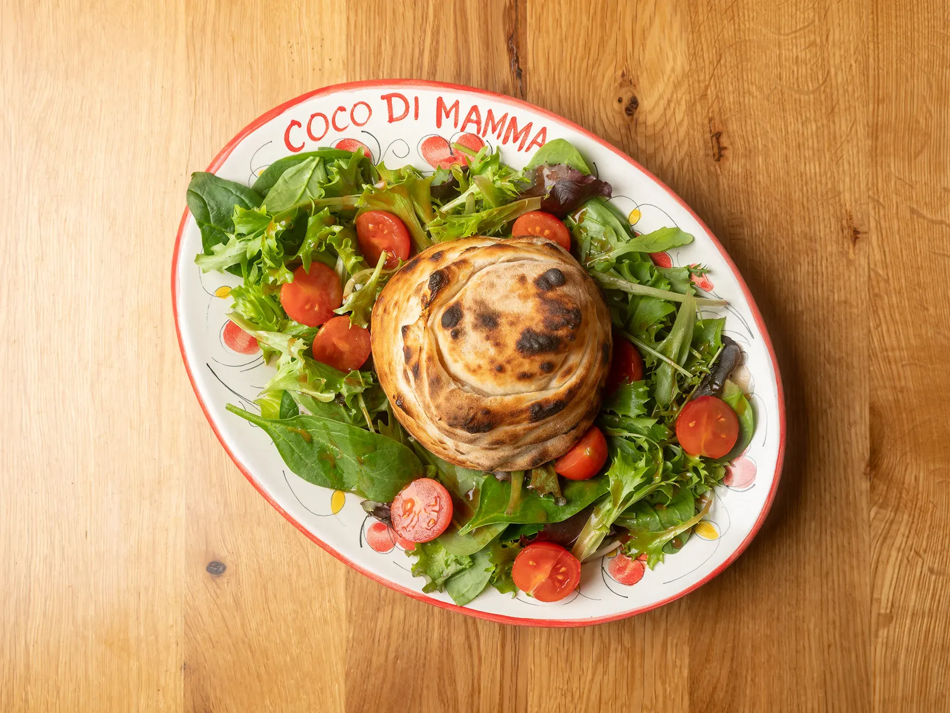 | Tomates cerises, roquette, vinaigre balsamique et huile d’olive | |
